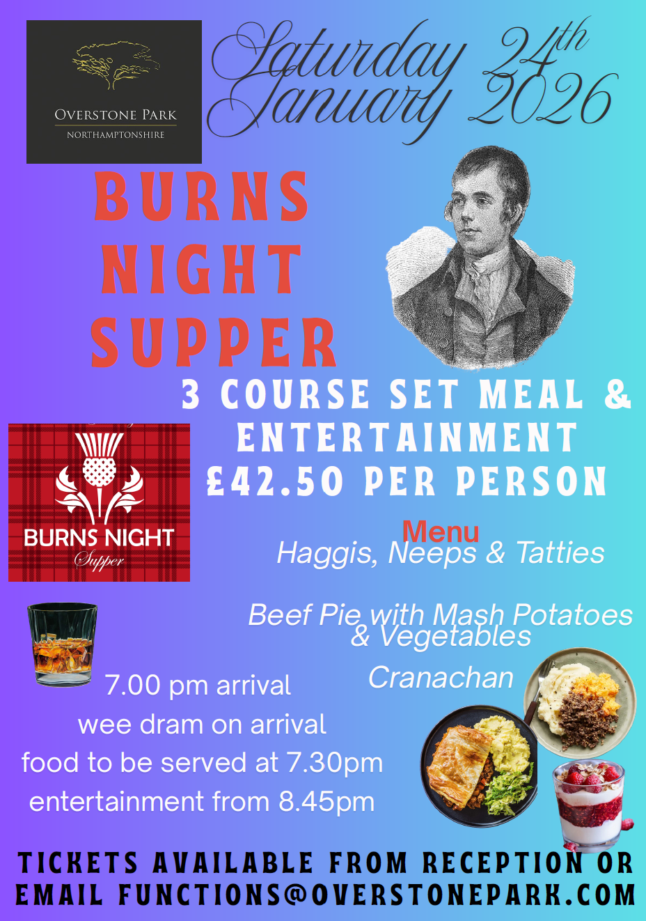 Wee Dram on arrival food to be served at 7.30pm and entertainment from 8.45pm